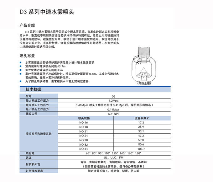 水噴淋系列 > 泰科(kē) > D3 系列中速水霧噴頭